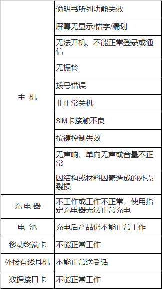 | 第十条 | 在三包有效期内,移动电话机主机出现质量问题的,由修理者免费修理。修理者应当保证修理后的移动电话机商品能够正常使用30日以上。 |