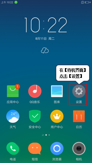 1. 在【待机界面】点击【设置】,如图1-1所示;