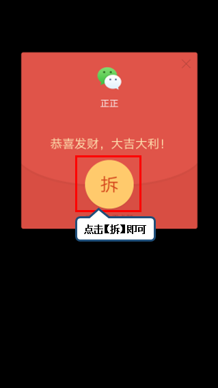 3. 开启【红包提醒】右侧开关,则当有红包时,手机界面会自动弹出红包;开启【红包提示音】右侧开关,则当有红包时,手机会语音提示“抢红包了”;如果同时开启【红包提醒】和【红包提示音】,手机会自动弹出红包,并进行语音提示,这样就不用担心抢不到红包了,只需要点击【拆】即可快速抢到红包,如果抢到红包还会语音提示“恭喜发财”,如图1-3至1-4所示;