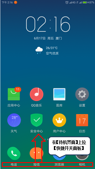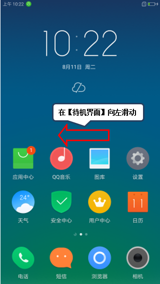 1. 在【待机界面】向左滑动,如图2-1所示;