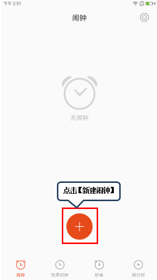 3. 在闹钟界面点击【新建闹钟】图标,如图2-3所示;