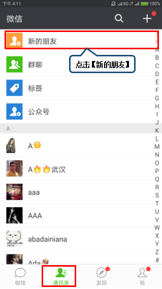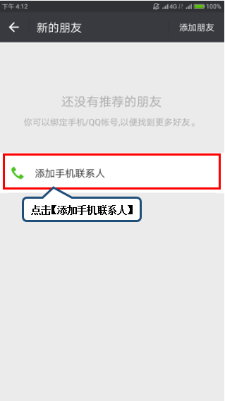 1. 登录微信,进入微信界面,在【通信录】中点击【新朋友】,再点击添加手机联系人,整合微信联系人和系统联系人,如图3-1所示;