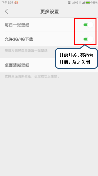 4. 打开【每日一张壁纸】同时开启【允许3G/4G下载】,这样即使在没有wifi条件下,只要数据网络开启着,每天都会有不一样的锁屏,如图4-4所示;