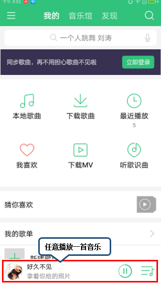 1. 在【待机界面】点击【音乐】,进入音乐界面,任意播放一首音乐,如图6-1至6-2所示;