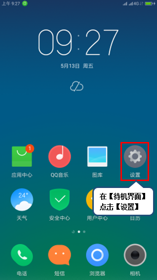 1. 在【待机界面】点击【设置】,如图4-1所示;
