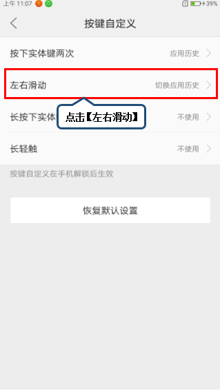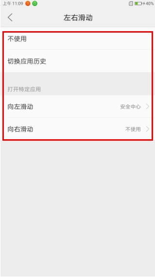 5. 点击【左右滑动】,可根据使用习惯选择【不使用】、【切换应用历史】,也可以设置【向左滑动】或是【向右滑动】打开特定应用,如图7-6至7-7所示;