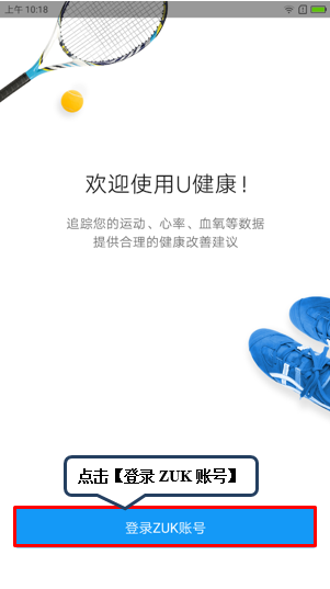 1. 在使用U健康应用时需登录ZUK账号并登记用户的基本信息,点击U健康应用后点击【登录ZUK账号】,如图1-1所示;
