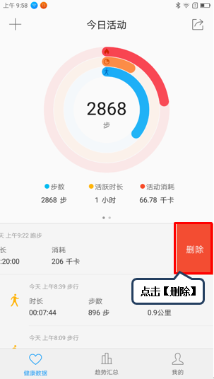 8. 向左滑动点击【删除】可删除相关的数据,如图1-13至1-14所示;