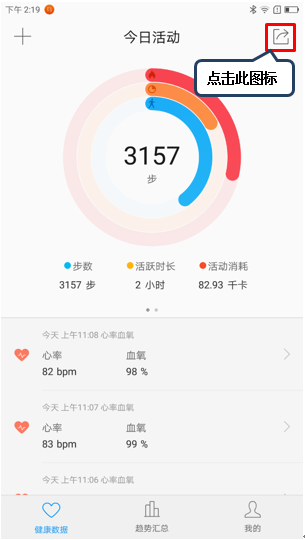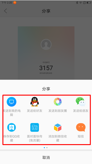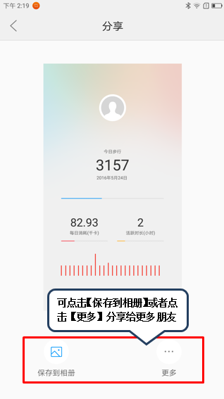 12. 点击右上角【分享】图标可将运动的相关数据保存到相册或者分享到朋友圈,如图1-24至1-26所示;