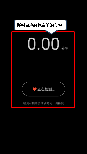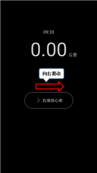 6. 运动监测时,在屏幕锁屏时,向右滑动,可对其当前的心率进行测试,随时查看身体的健康程度,如图2-15至2-16所示;