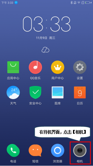 1.在待机界面,点击【相机】,如图1-1所示;