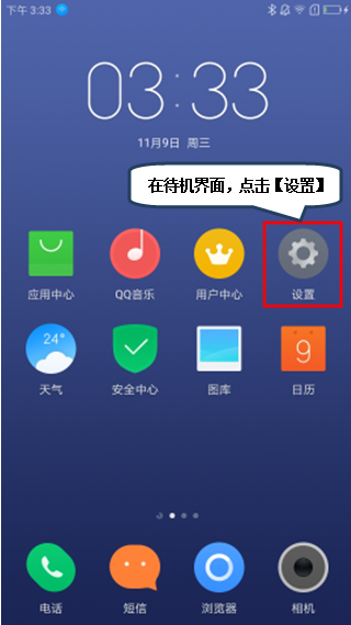 1.在待机界面,点击【设置】,如图1-1所示;