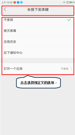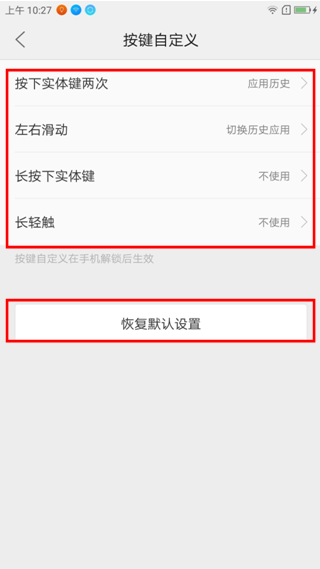 3.如果打开【轻触时的振动反馈】时,触碰Home键会出现振动;点击【按键自定义】,对Home键自定义,如图1-3所示;