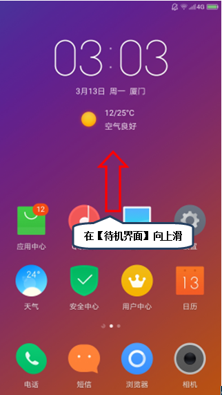 1.在【待机界面】向上滑动,打开【全局搜索】,如图1-1所示;