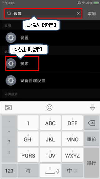 2.在搜索框输入【设置】,在显示的搜索结果点击【搜索】,如图1-2所示;