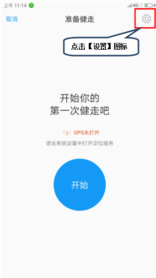 2.点击下方【健走】、【跑步】或【骑行】图标,以【健走】为例,点击【开始】开启专业运动记录模式,如图1-2;