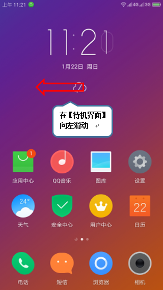 1. 在【待机界面】向左边滑动,如图1-1所示;