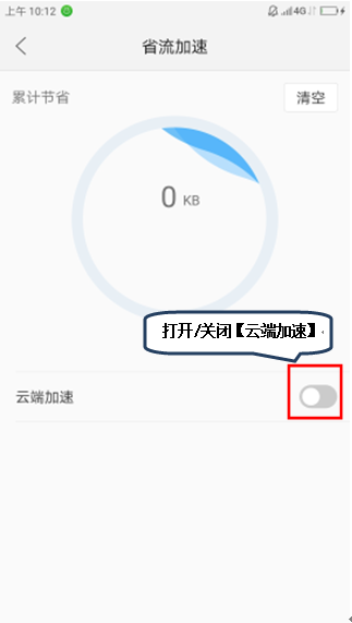 5.在【浏览器快捷栏】点击【设置】-【省流加速】-关闭/打开【云端加速】,如图1-4;
