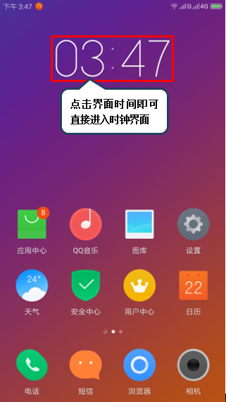 1.在【待机界面】向左滑动,点击【时钟】;或者点击界面时间即可直接进入时钟界面,如图1-1至1-3所示;