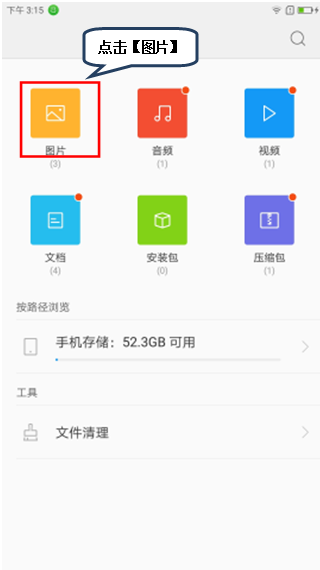 1.待机界面点击【文件管理】-【图片】,如图1-1;