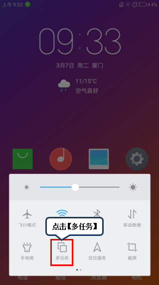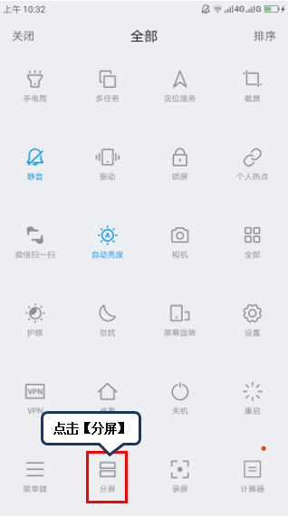 2. 点击【多任务】(需通过设置-尝鲜功能-分屏,开启在多任务中显示分屏按钮),如图1-2所示