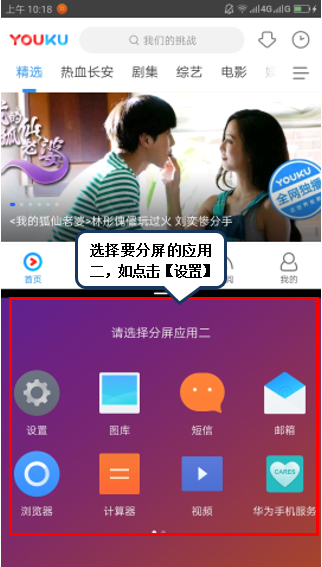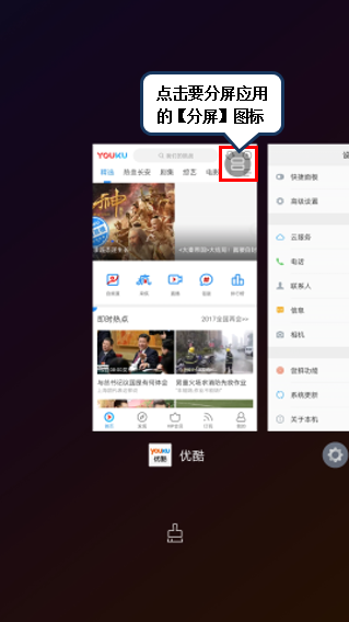 5. 在分屏下窗口可选择分屏应用二,如点击【设置】即可实现分屏使用,如图2-5至2-6所示;