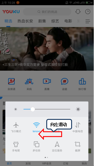 2. 在【快捷面板】向左滑动,如图2-2所示;