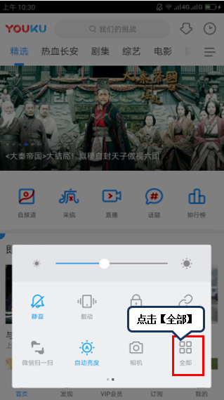 1. 在【待机界面】上拉【快捷面板】,如图1-1所示;