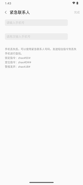 3、设置紧急联系人。紧急联系人作用:通过紧急联系人号码发送短信指令。