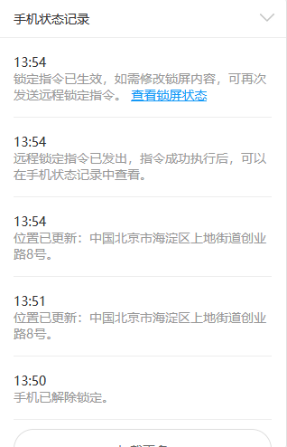 此外,您可以查看手机当前各类状态信息及历史操作记录。