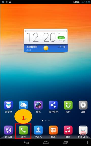 1. 在【待机界面】点击【拨号】图标,如图1-1所示;