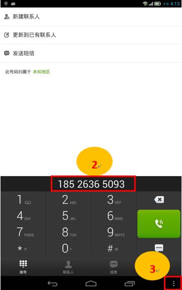 2. 输入对方手机号码,点击右下角【菜单键】