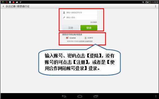 3.点击左上方【登录】,输入账号、密码点击【登陆】,没有账号的可点击【注册】,或者是【使用合作网站帐号登录】登录,登录后可将笔记同步至云端,如图1-3至1-4所示;