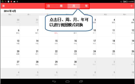 3. 点击日、周、月、年可以进行视图模式切换,如图1-3所示;