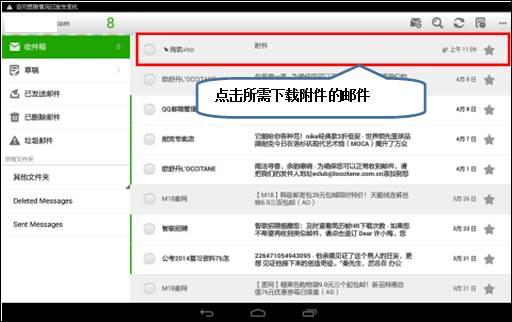 3. 点击所需要下载附件的邮件,如图1-3所示;