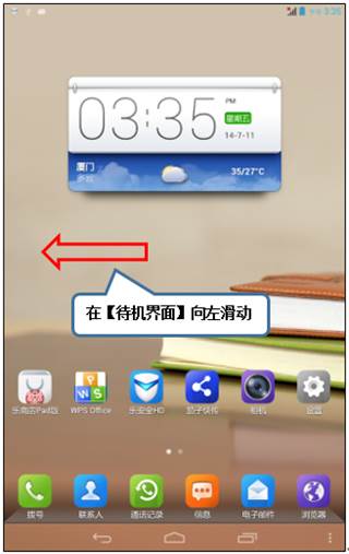 1. 在【待机界面】向左滑动,如图1-1所示;