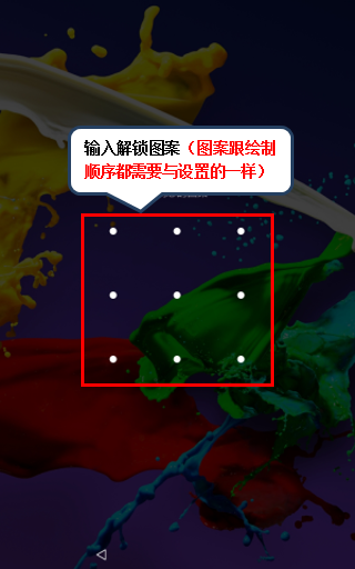 5. 其【滑动】、【图案】、【PIN码】、【密码】的解锁界面,如图1-5至1-8所示。