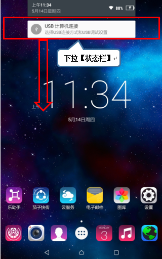 1. 在【待机界面】下拉【状态栏】,如图1-1所示;