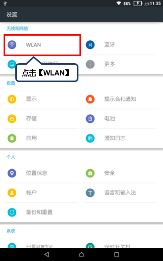 3. 点击【WLAN】图标,亮色为开启,反之关闭,如图1-3所示。