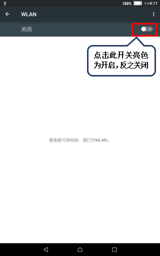 2. 点击【WLAN】,进入【WLAN】界面点击右上角开关,亮色为开启,反之关闭,如图2-2至2-3所示。