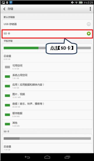 3. 在存储界面中点选【SD卡】设置默认存储方式,则相机拍照后的照片即可存储到外置SD卡里,如图1-3所示;