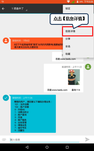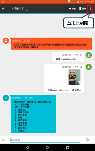 2. 点击目标短信,如图1-2所示;
