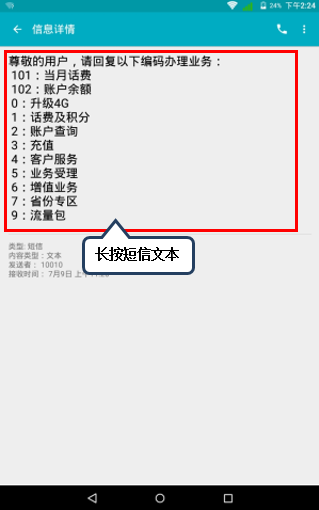 手机或平板使用过程中,有时候需要对接收到的短信文本进行复制粘贴,具体可参考以下操作: