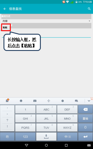 6. 长按输入框,点击【粘贴】即可将复制文本粘贴到输入框内,如图1-8所示。