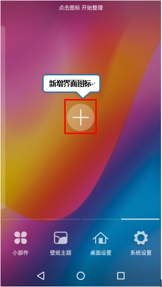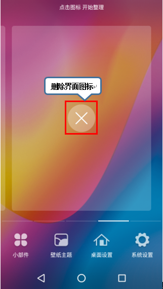 1. 长按空白处,向左滑动,点击删除界面图标和新增界面图标,可以对界面进行新增与删除,如图2-1至2-4所示。