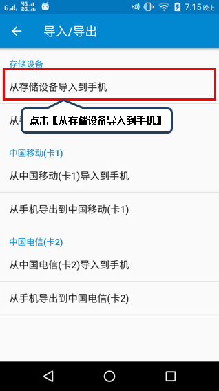 1. 在上述图1-5中点击【从存储设备导入到手机】,如图2-1所示;