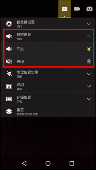 4. 点击【拍照声音】选择开启或关闭,如图1-4所示;