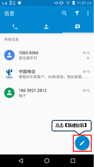2. 在短信界面点击右上角【新建短信】图标,如图1-3所示;