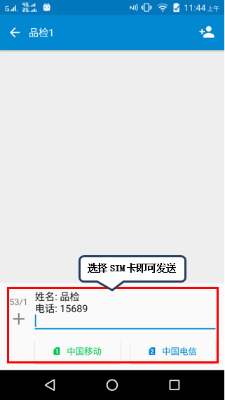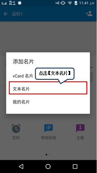 5. 选择名片形式,点击【文本名片】为例,然后选择要发送的联系人,点击【完成】,选择SIM即可发送,如图1-6至1-8所示。