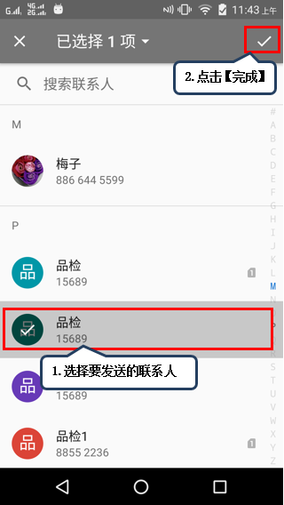 手机或平板使用过程中,会遇到要将联系人的号码发送给其他人的时候,这就需要给联系人发送名片,具体可参考以下操作: